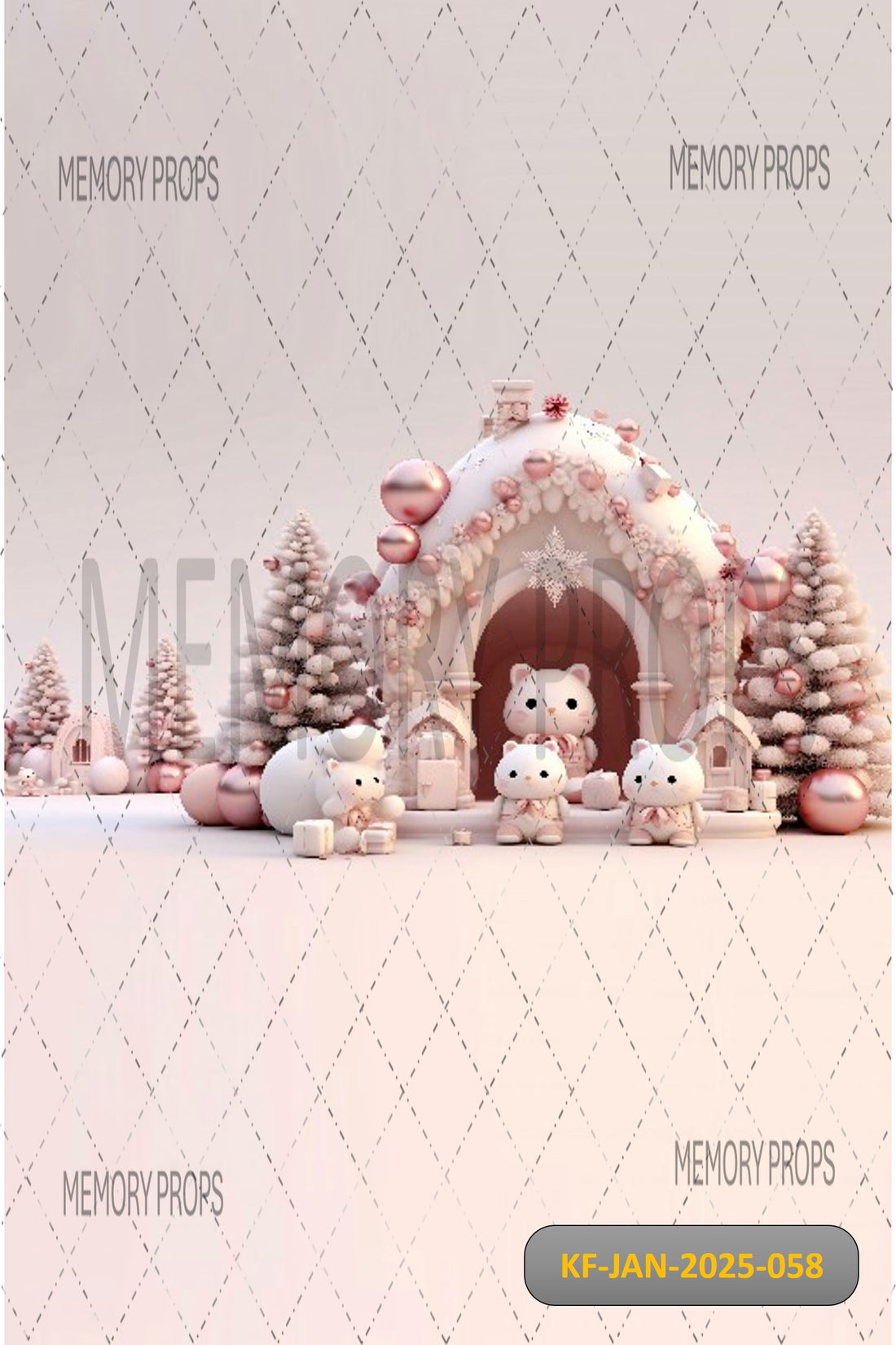 ELEGANT CHRISTMAS TEDDY BEAR - PRINTED BACKDROP