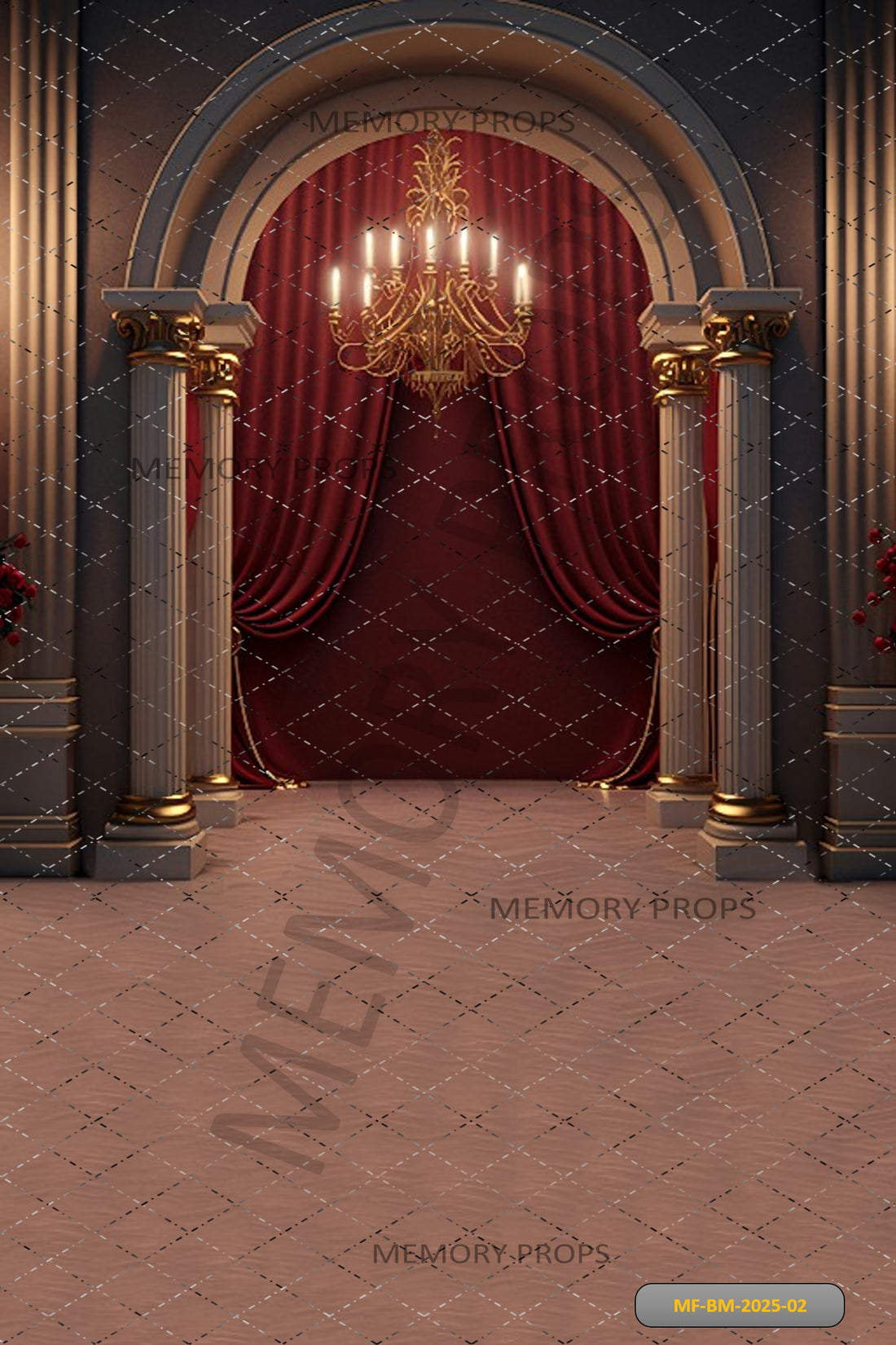 ROYAL RED AND GOLD CHANDELIER ARCH - PRINTED BACKDROP