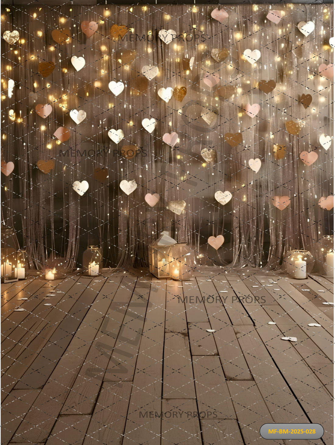 HEART GARLAND AND STRING LIGHTS VALENTINE'S - PRINTED BACKDROP