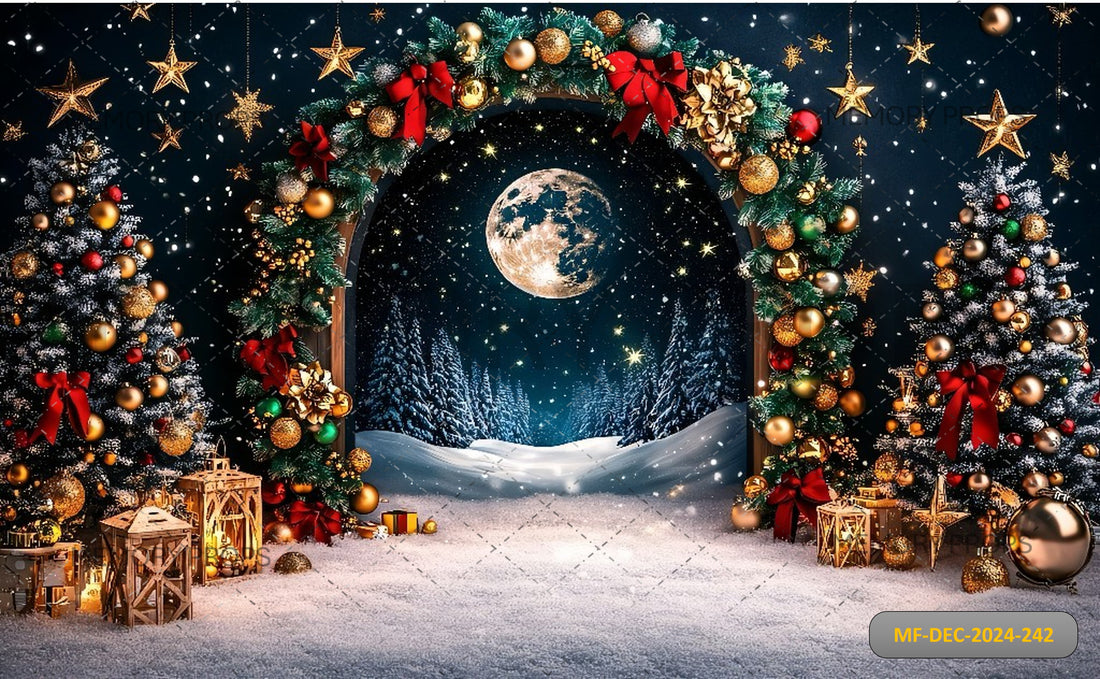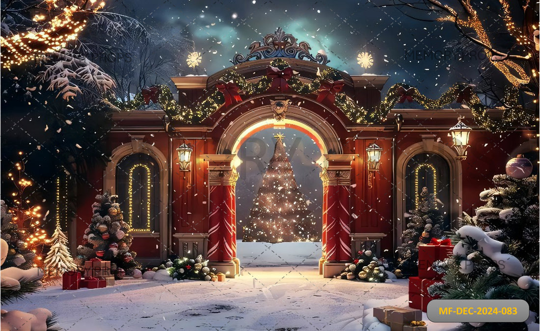 ARCH MADE OF CHRISTMAS TREE BALLS AND GINGERBREAD - PRINTED BACKDROPS