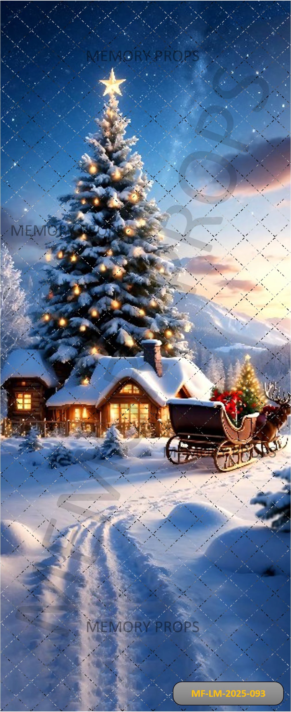 CHRISTMAS SNOWY CABIN AND SLEIGH - PRINTED BACKDROOP