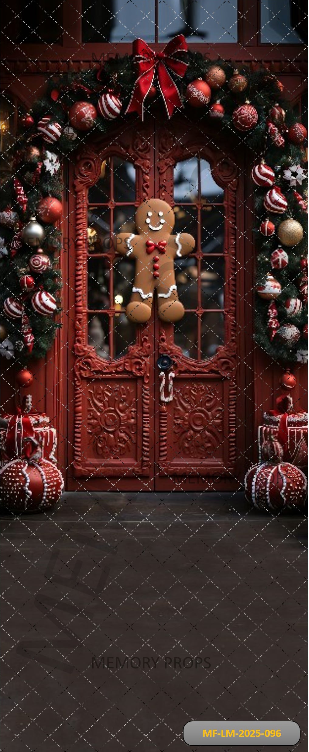 RED GINGERBREAD MAN CHRISTMAS DOOR - PRINTED BACKDROP