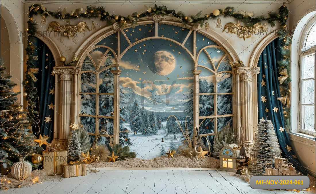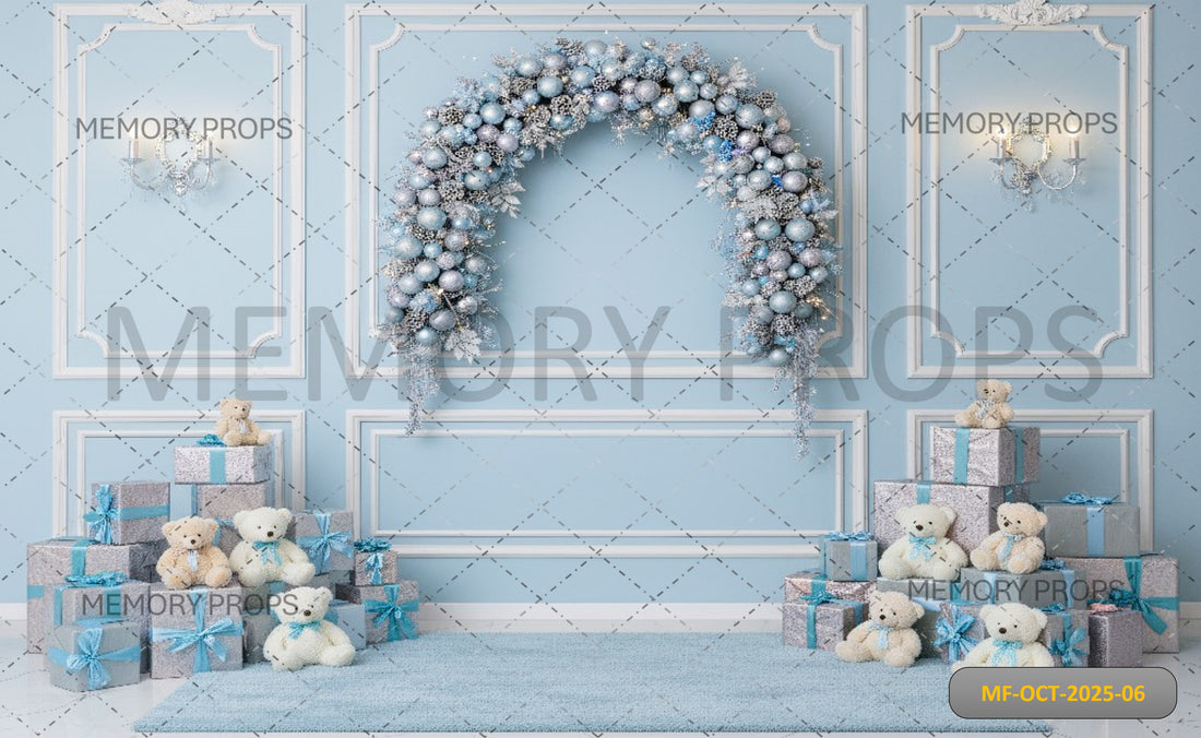 BABY BLUE CHRISTMAS ARCH - PRINTED BACKDROP