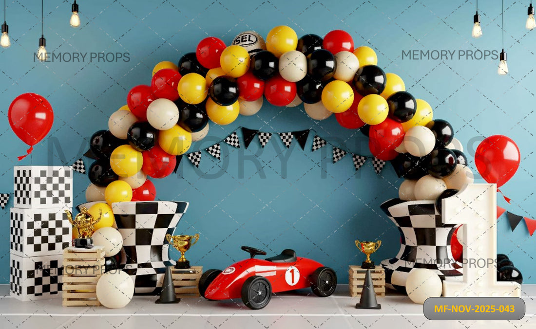 RED RACE CAR FIRST BIRTHDAY - PRINTED BACKDROP