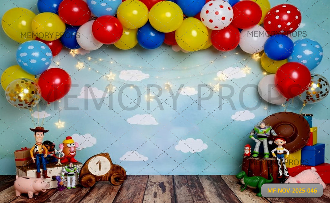 TOY STORY CARTOON BALLOON PARTY - PRINTED BACKDROP