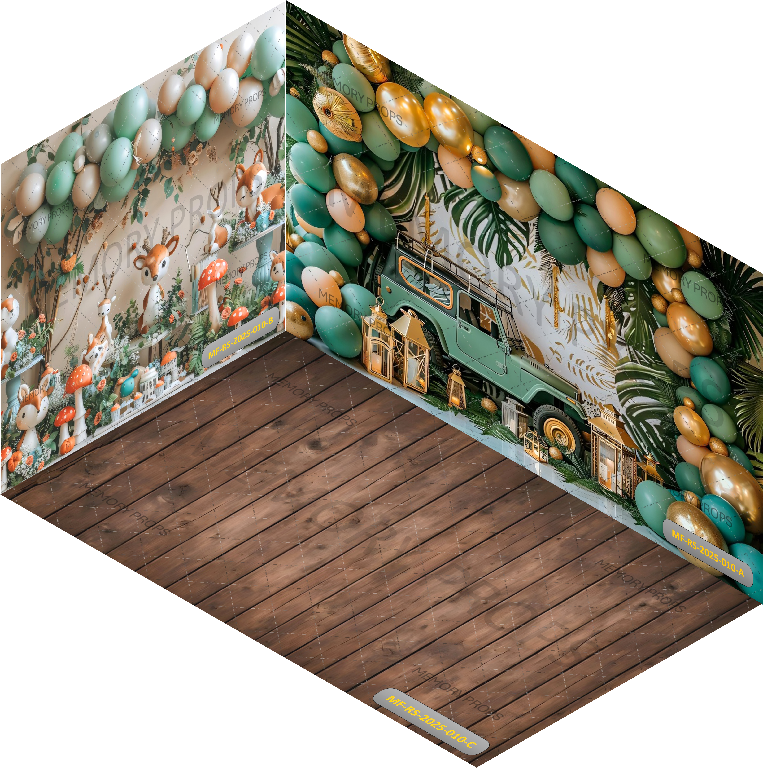 FOREST TEDDY BEAR SAFARI BALLOON ARCH - PRINTED BACKDROP
