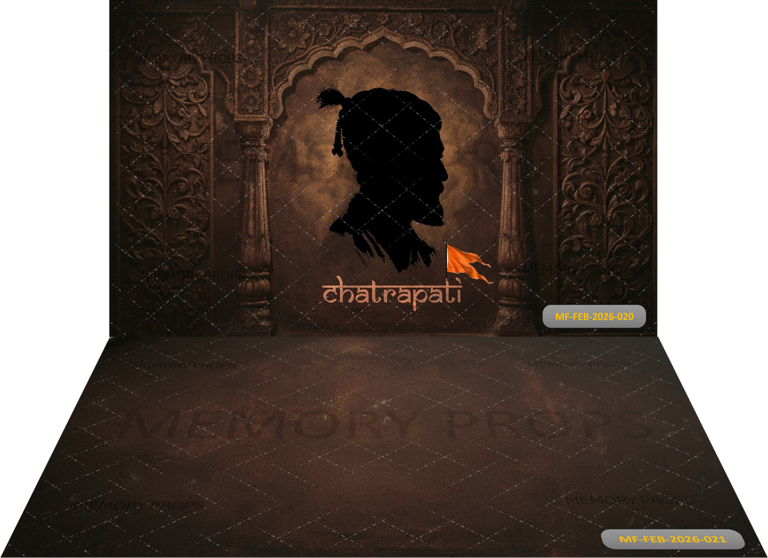 MAJESTIC MARATHA HERITAGE + FLOOR AND WALL SET WITH CHHATRAPATI SILHOUETTE AND CARVED STONE ARCHWAY - PRINTED BACKDROP