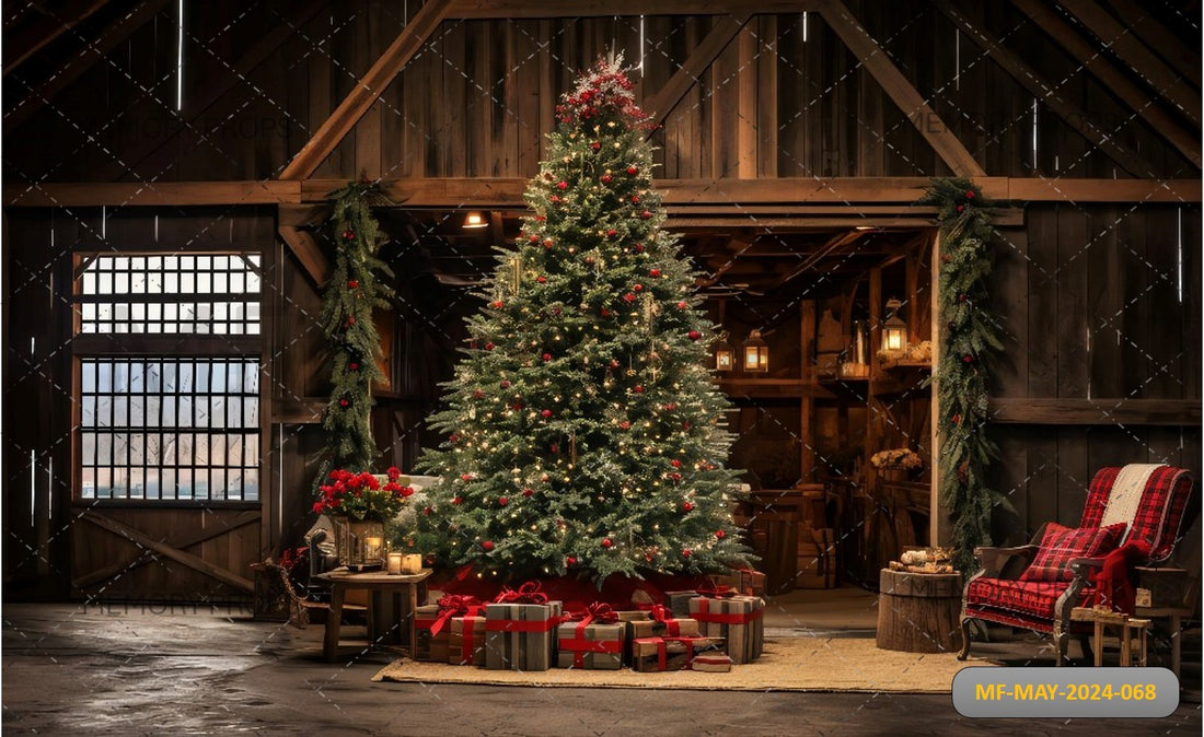 CHRISTMAS TREE IN FARM BARN - PRINTED BACKDROPS