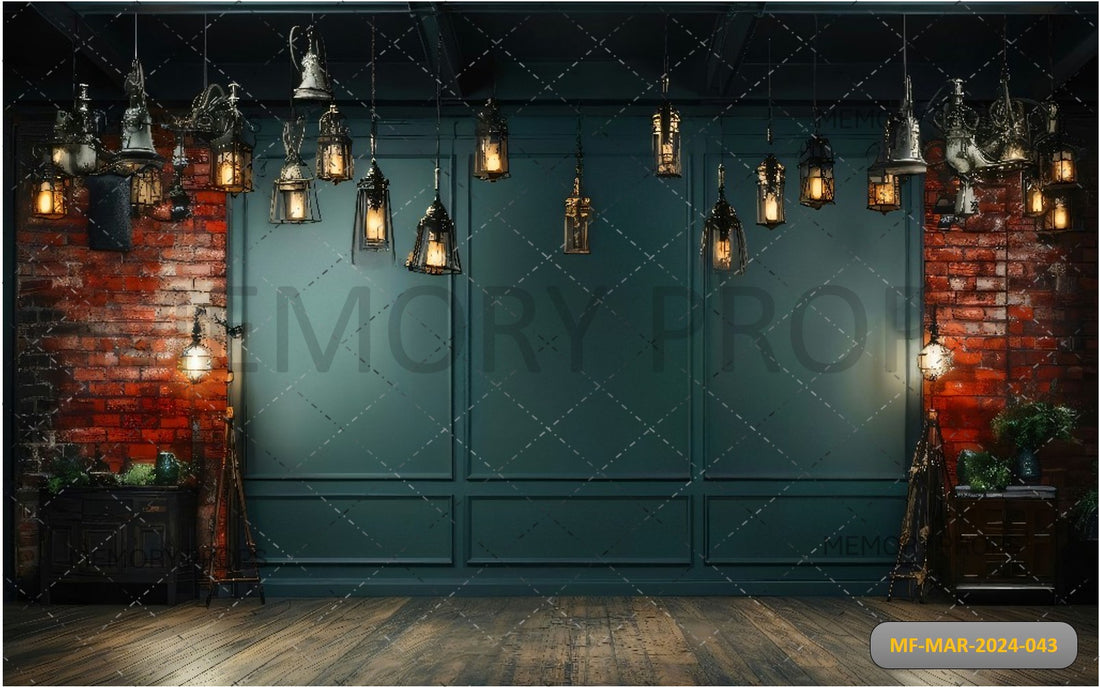 OLD BRICK WALL WITH LIGHTS SHINING PRINTED BACKDROP