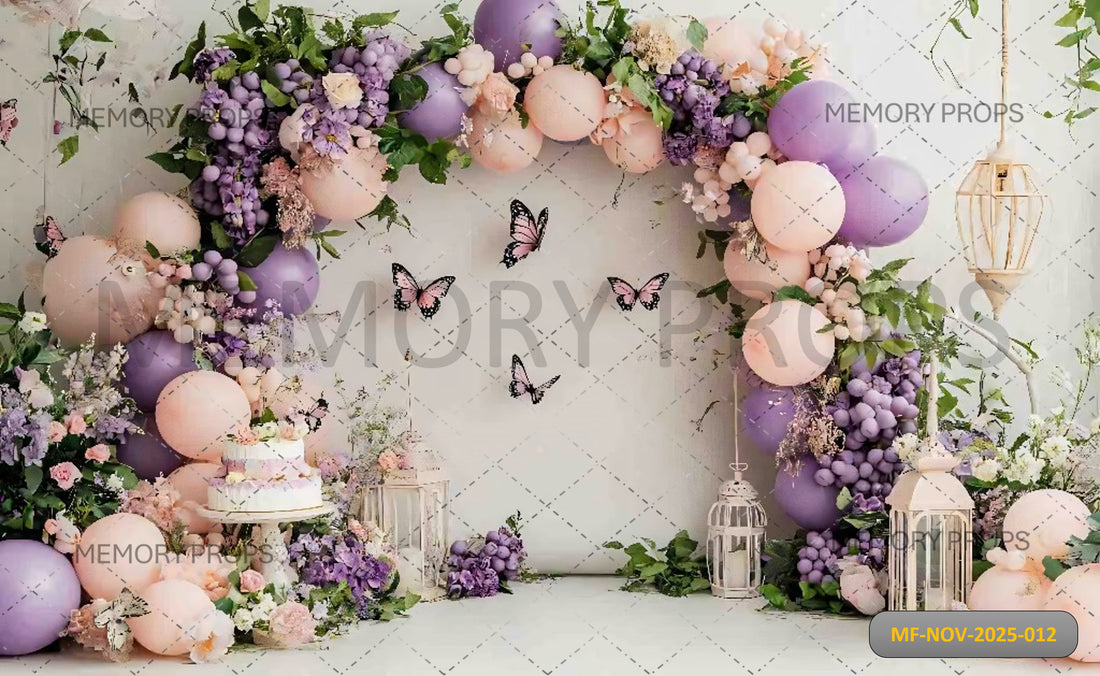 PASTEL LILAC AND BLUSH BALLOON ARCH - PRINTED BACKDROP