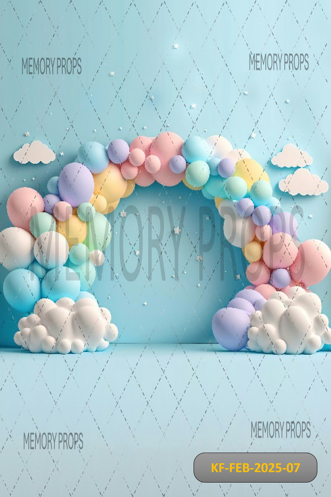 Float into a magical sky with fluffy clouds, soft blue skies, and charming pink balloons,...