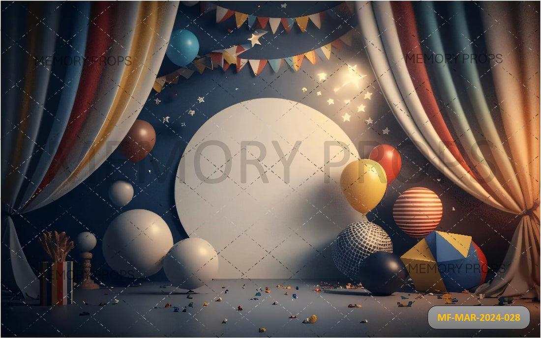 FESTIVE PARTY WITH CARNIVAL BALLOONS STAGE - PRINTED BACKDROPS