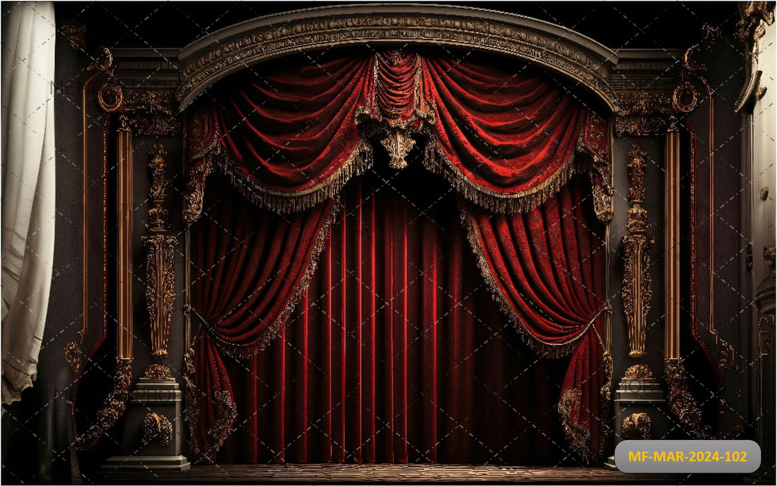 Step into the spotlight with this grand circus tent backdrop, featuring rich red curtains ready...