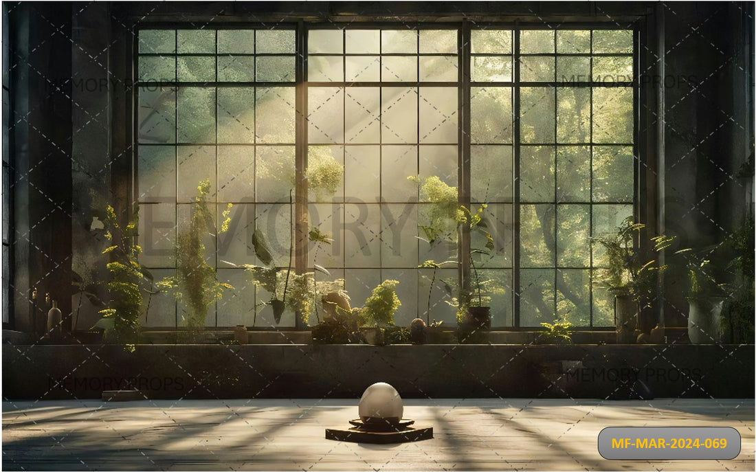 ROOM WITH A LARGE WINDOW AND PLANTS PRINTED BACKDROP