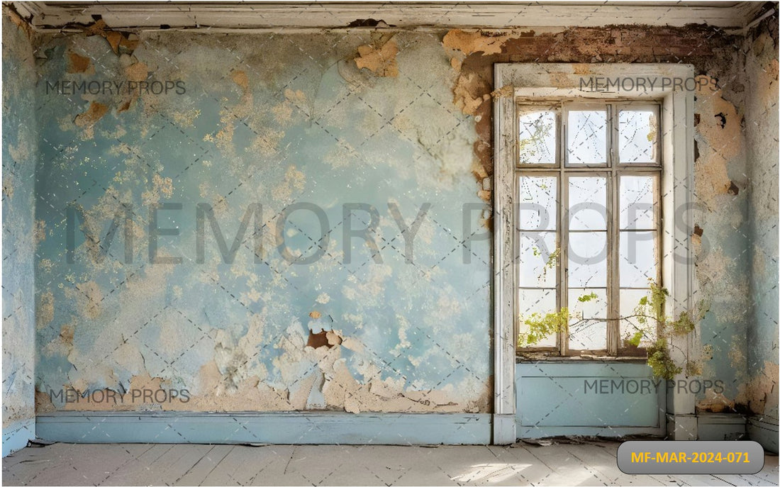 OLD WINDOW WITH WALL PRINTED BACKDROP