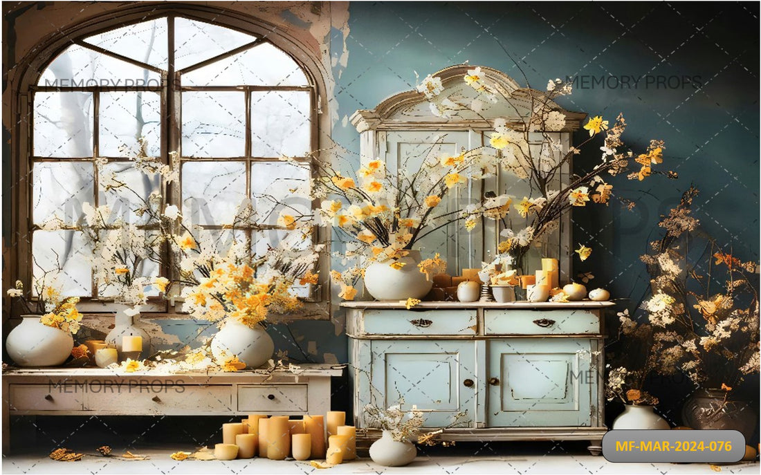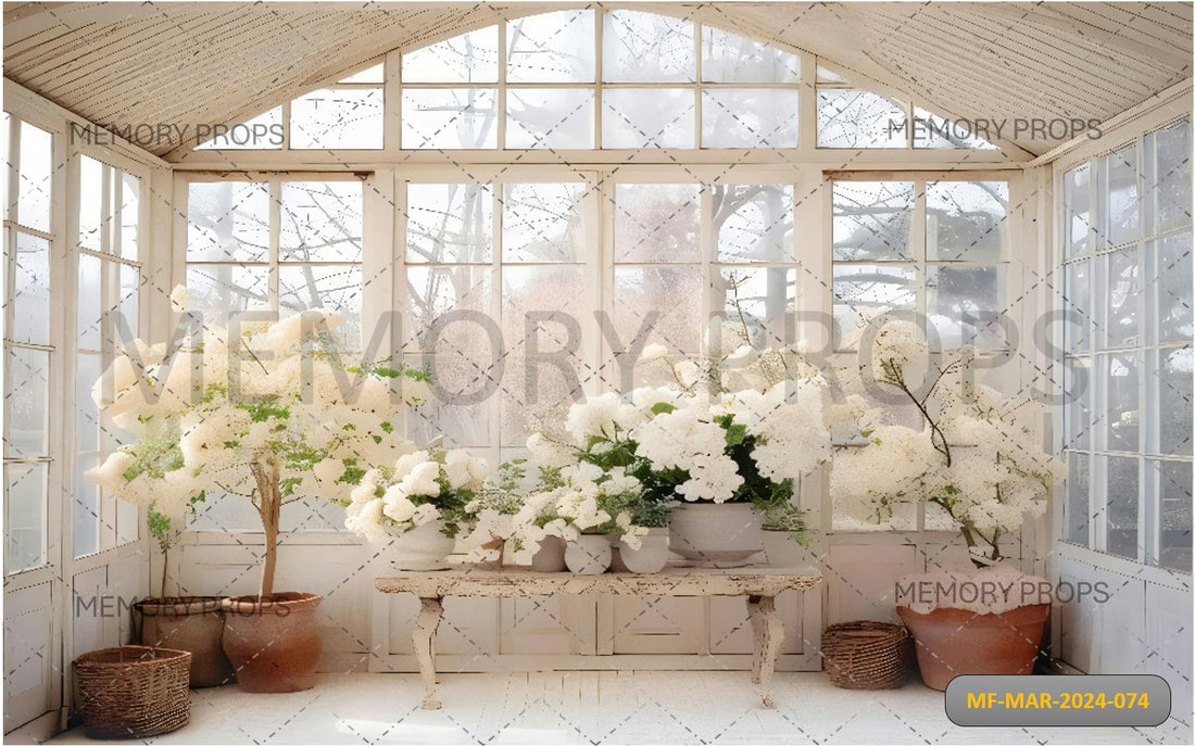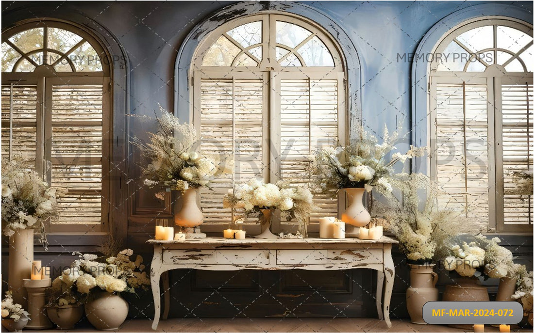 CLASSIC WINDOW WITH WHITE FLOWERS PRINTED BACKDROP