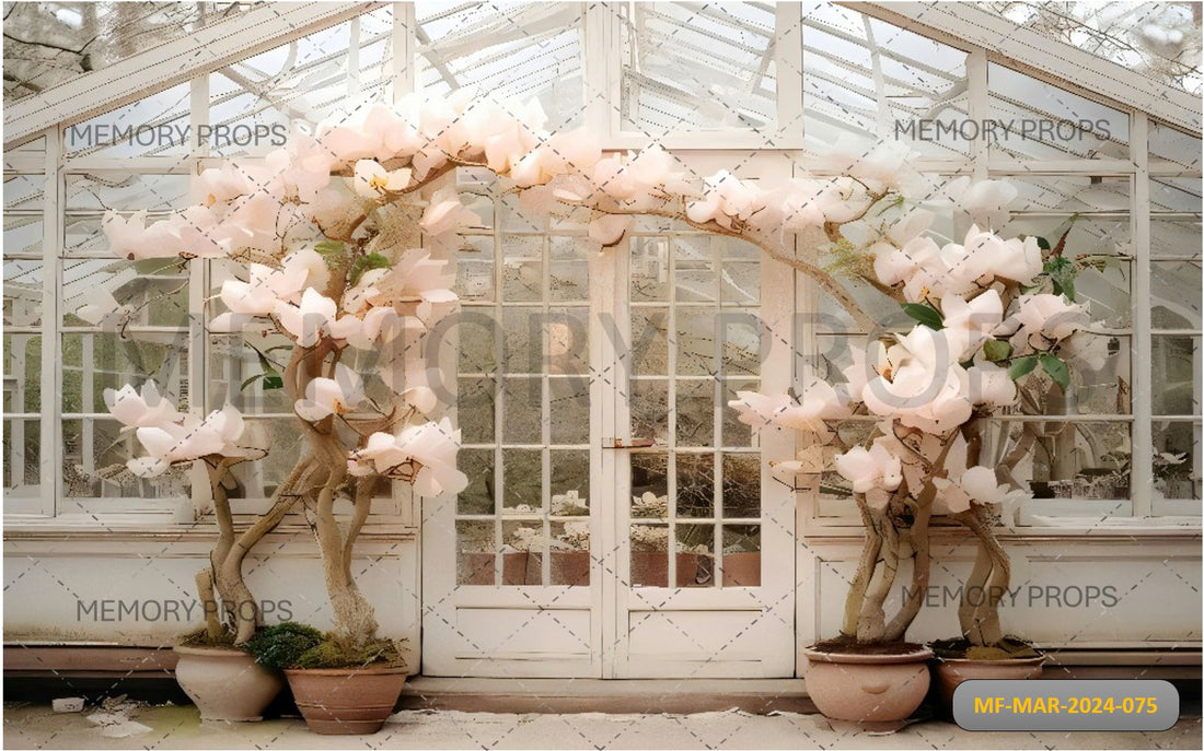 WHITE ROOM WITH WHITE FLOWERS TREE PRINTED BACKDROP