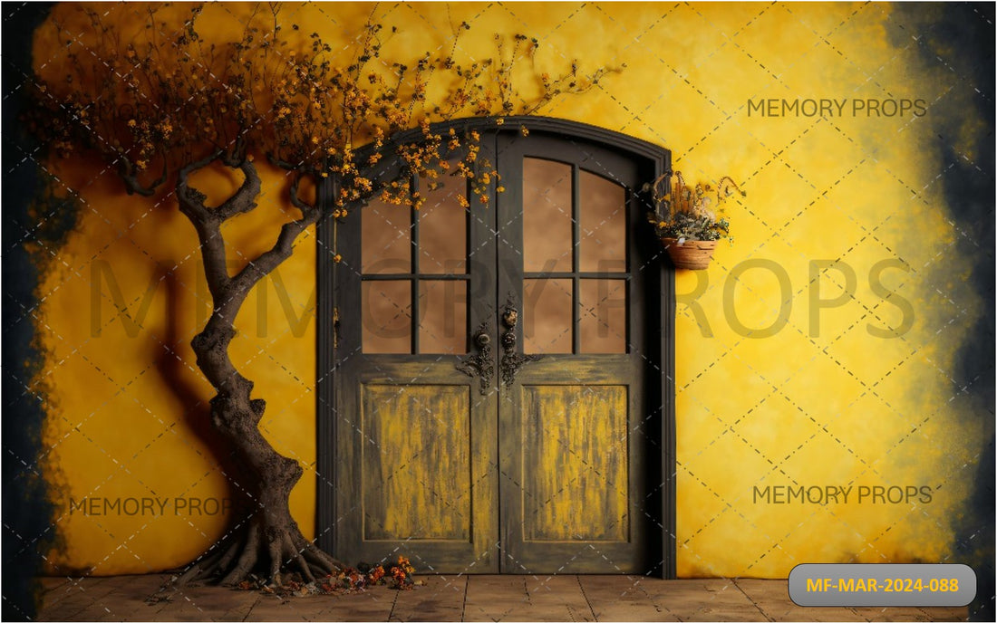 DOOR WITH TREE AND YELLOW BACKGROUND PRINTED BACKDROP
