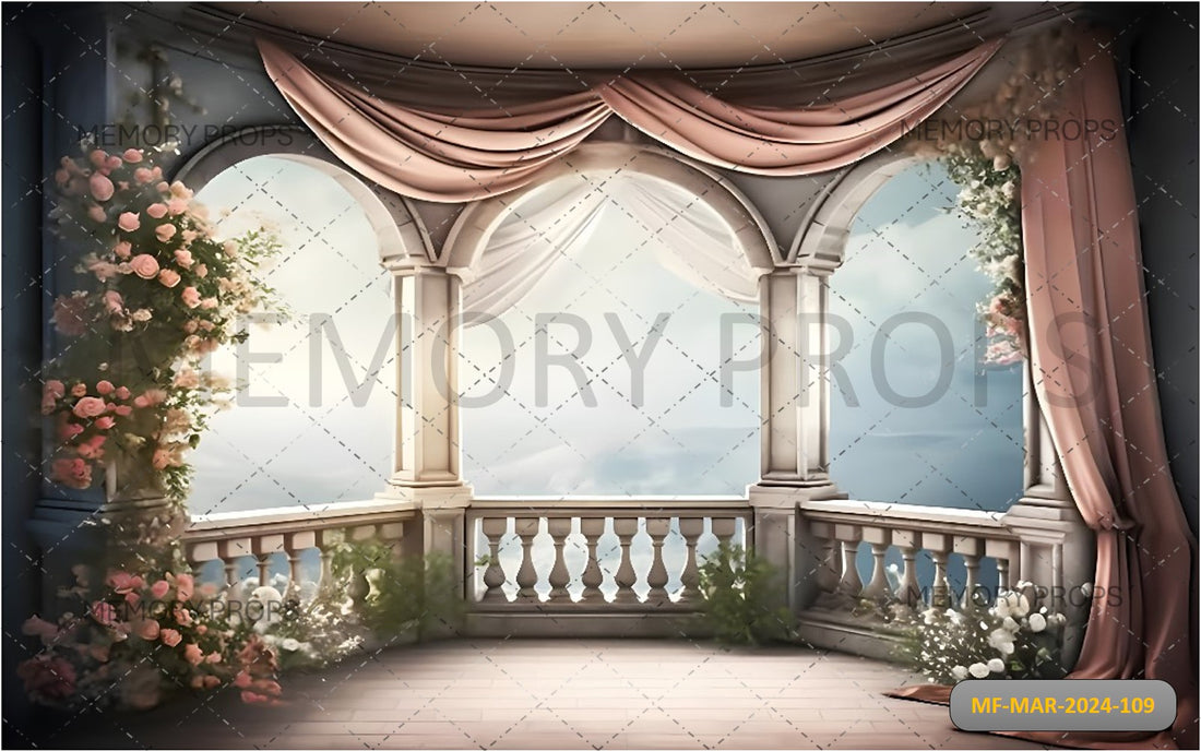 CASTLE BALCONY FLOWERS PRINTED BACKDROP
