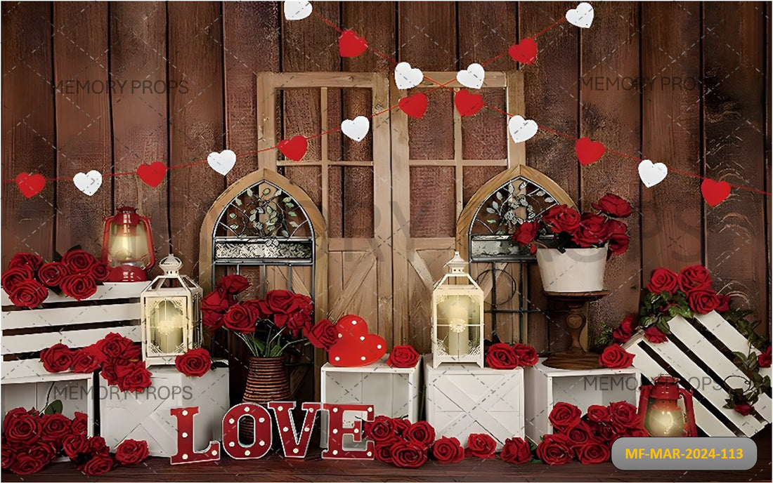 VALENTINES RED ROSE AND HEART WITH WINDOW PRINTED BACKDROP
