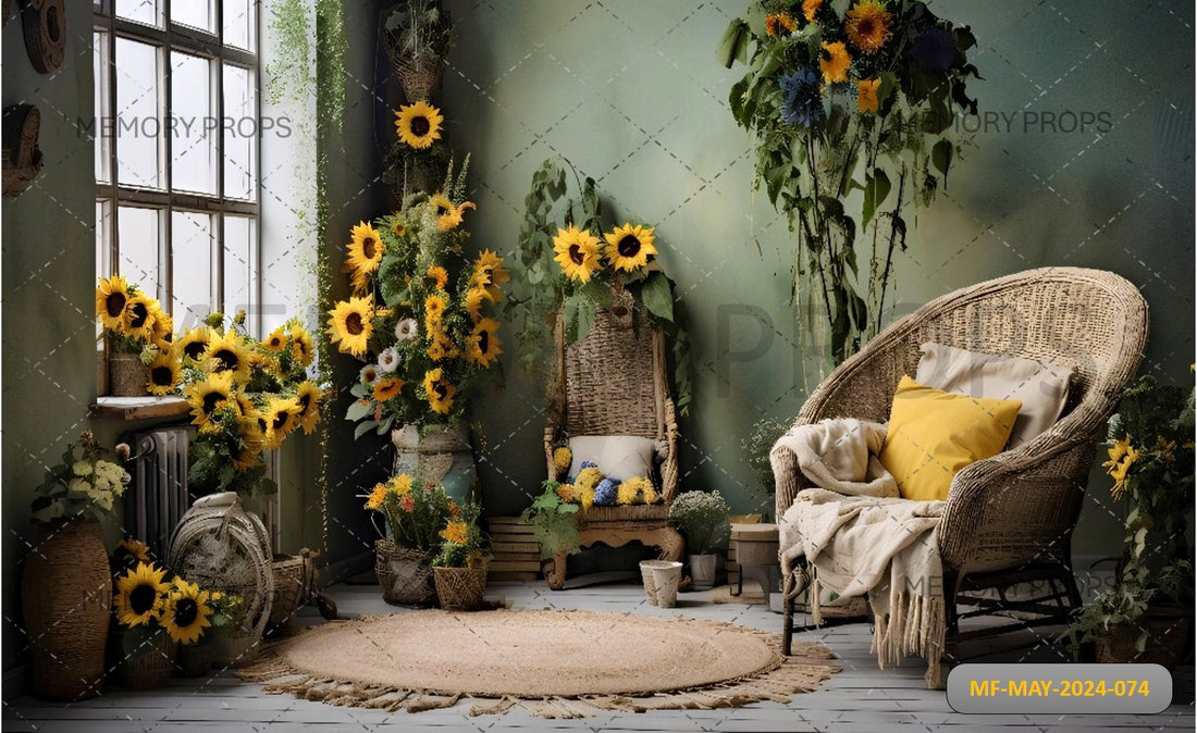 Bask in the tranquil ambiance of the Sunlit Serenity Room backdrop. This serene setting features...