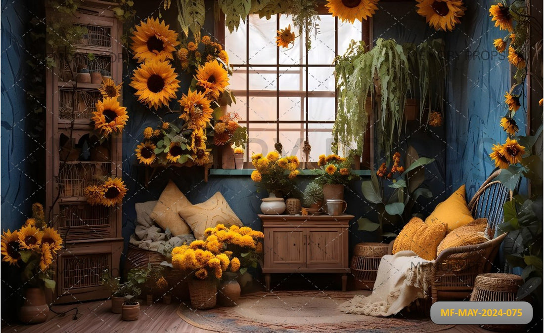 BOHO ROOM SUNFLOWERS YELLOW ROOM INTERIOR PRINTED BACKDROP