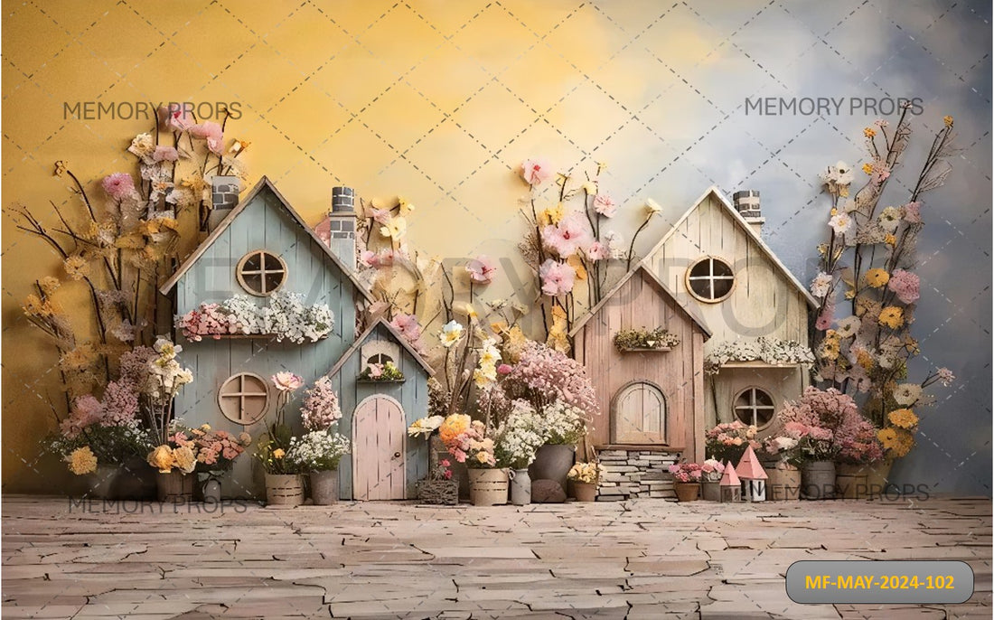 RUSTIC HOUSE AND FLOWERS PRINTED BACKDROP