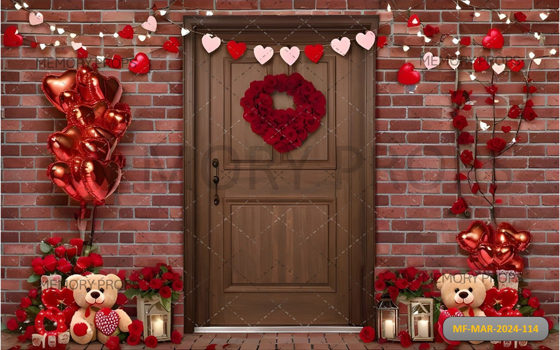 VALENTINES DOOR DECORATION WITH TEDDY - PRINTED BACKDROPS