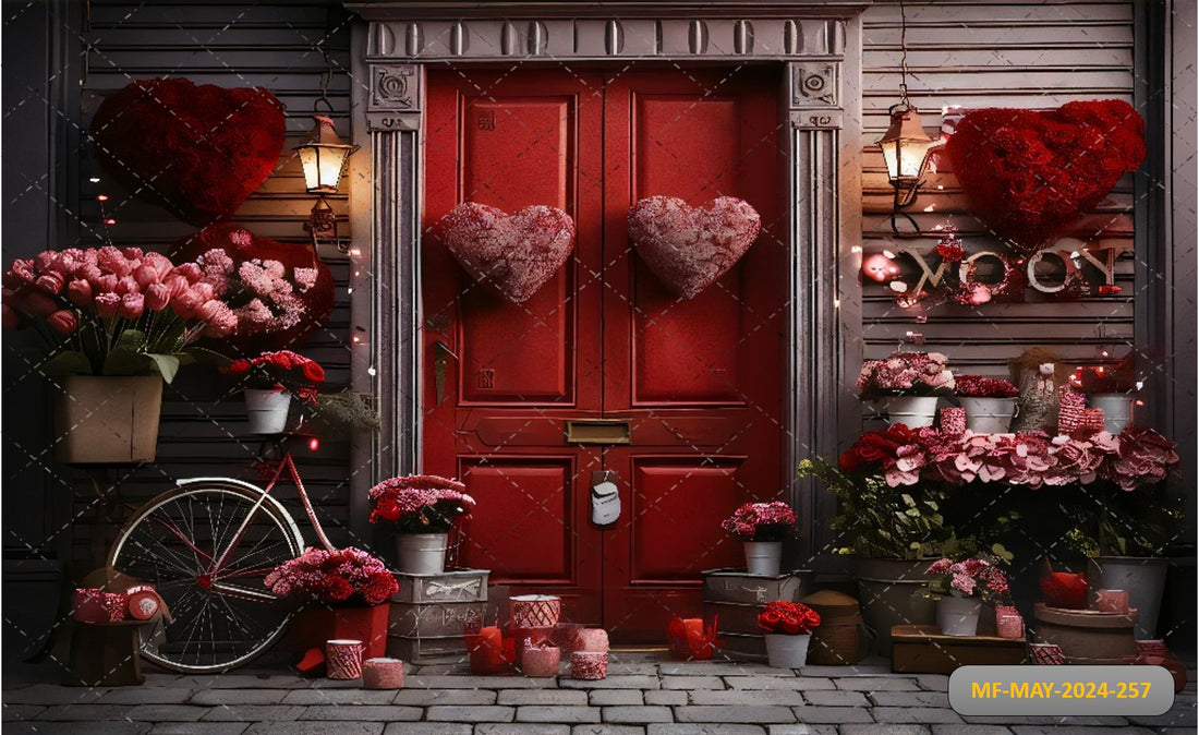 Valentine's Day Backdrop a romantic fusion of red and pink flowers with heart decorations sets...