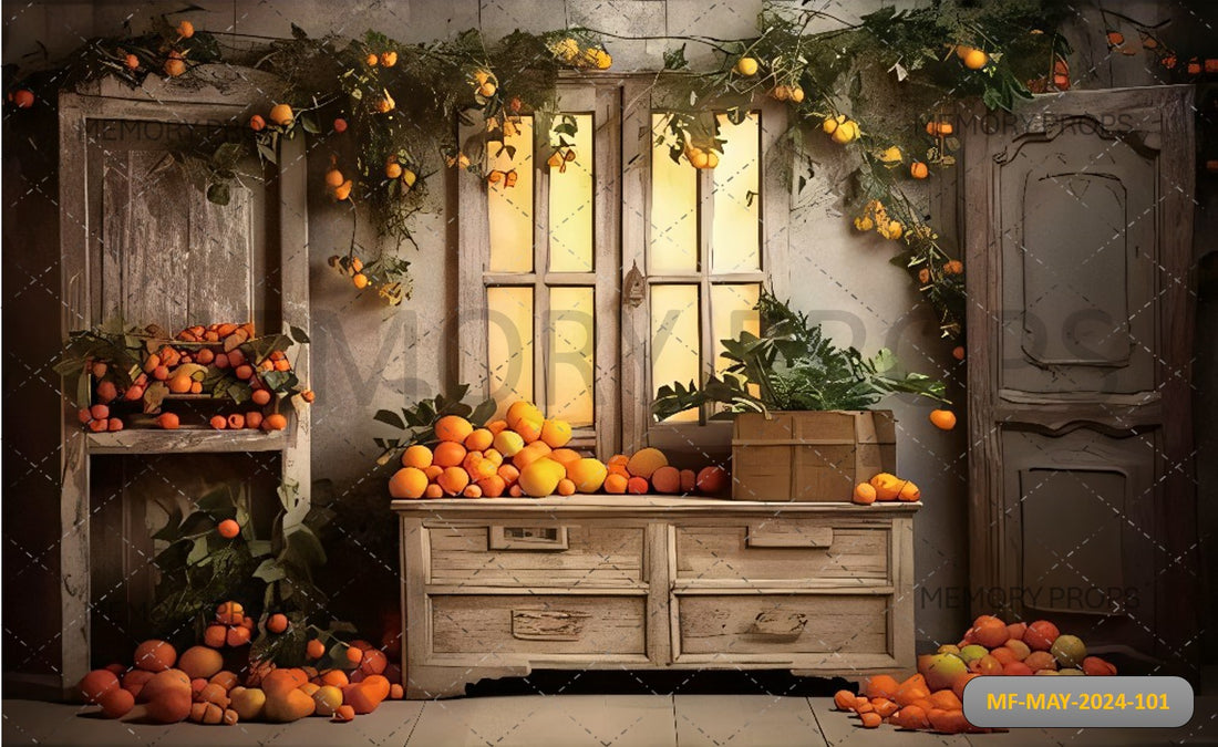 WOODEN HOUSE WITH WINDOW WITH ORANGE PRINTED BACKDROP