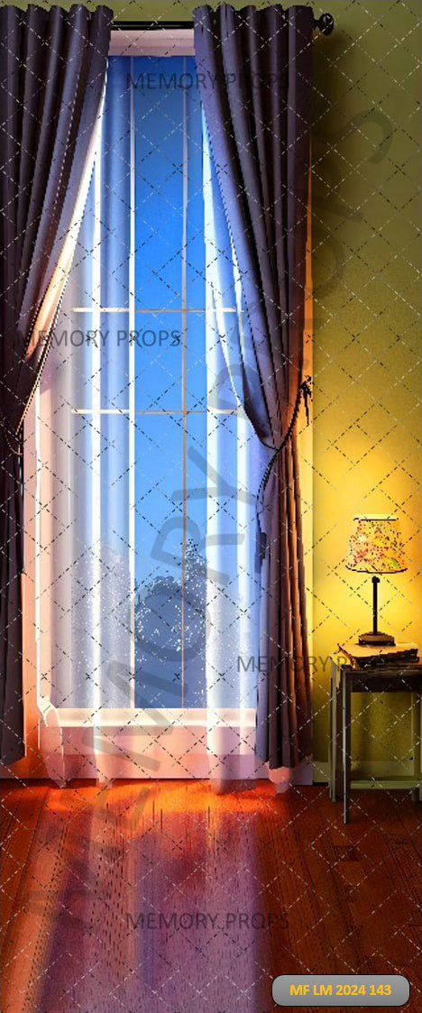ELEGANT WINDOW INTERIOR WITH CURTAINS AND LAMP - PRINTED BACKDROP