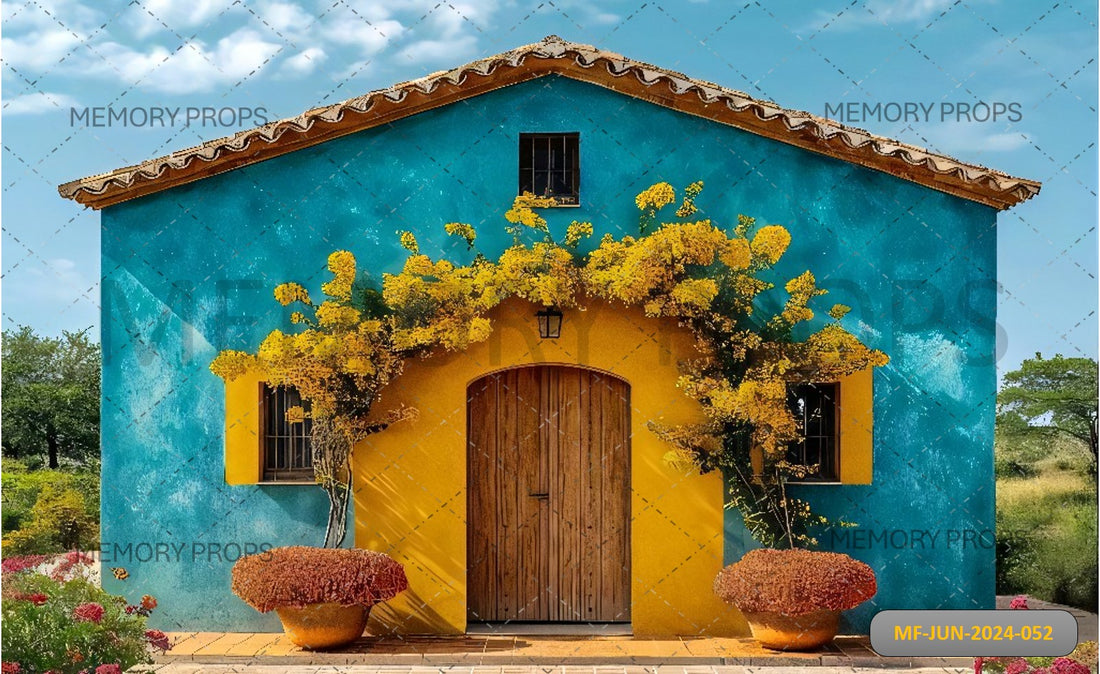 COLORFUL DOOR WITH ARCH WINDOW AND FLOWERS - PRINTED BACKDROPS