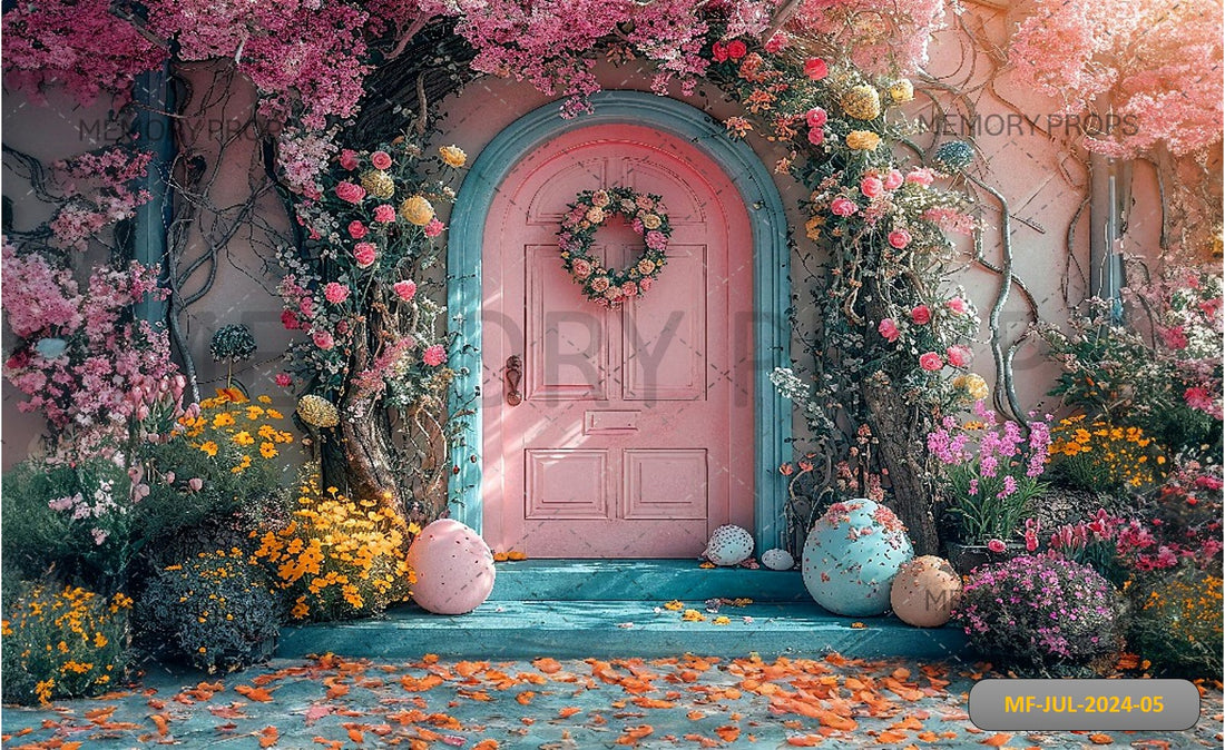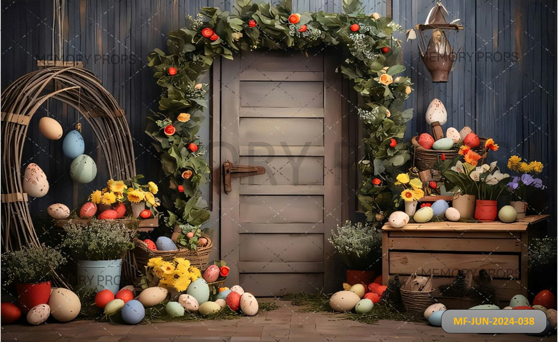 DOOR WITH FLOWERS AND EGGS - PRINTED BACKDROPS