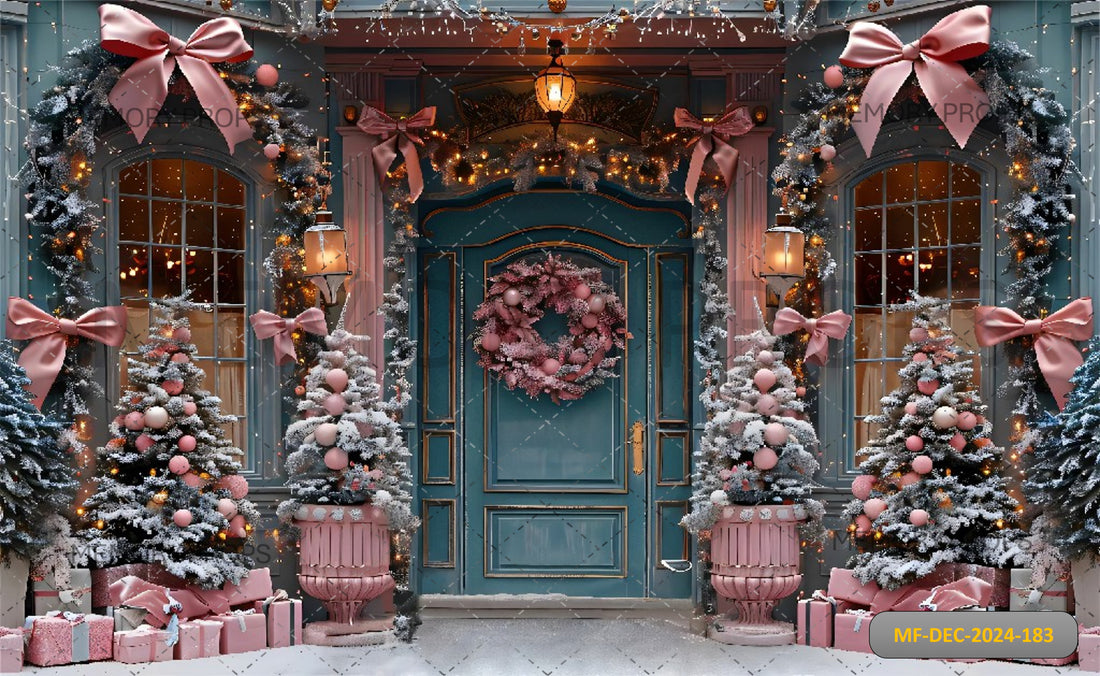 CHRISTMAS ELEGANT PINK BOW DOOR DECOR - PRINTED BACKDROPS