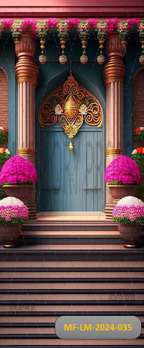 DOOR WITH FLOWERS IN FRONT OF IT - PRINTED BACKDROPS