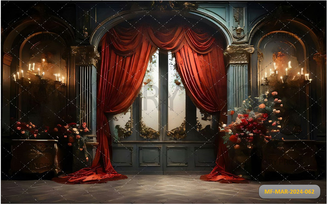 AVEZZANO SPRING RED CURTAIN AND WINDOW PRINTED BACKDROP
