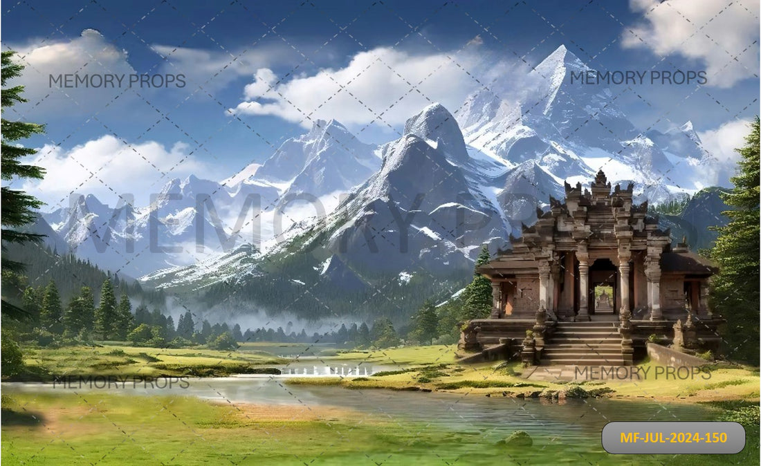 TEMPLE WITH SNOW MOUNTAINS - PRINTED BACKDROPS