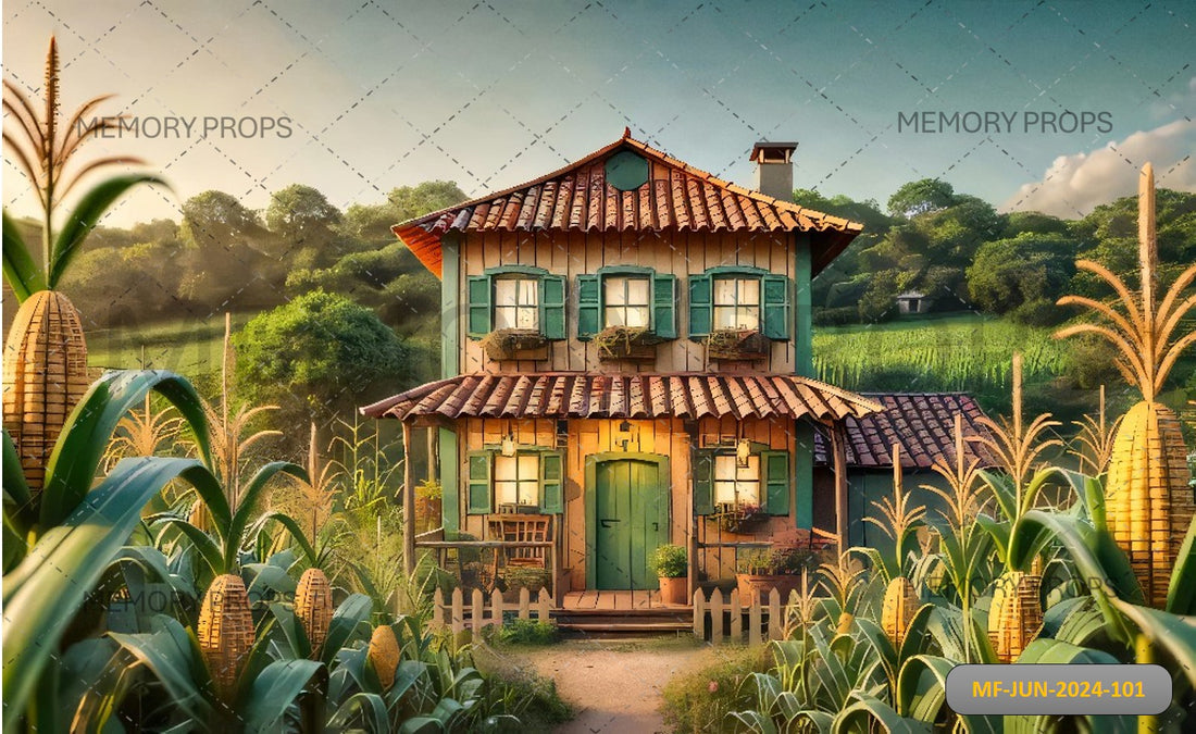 CORN PLANTS WITH OLD HOUSE - PRINTED BACKDROPS