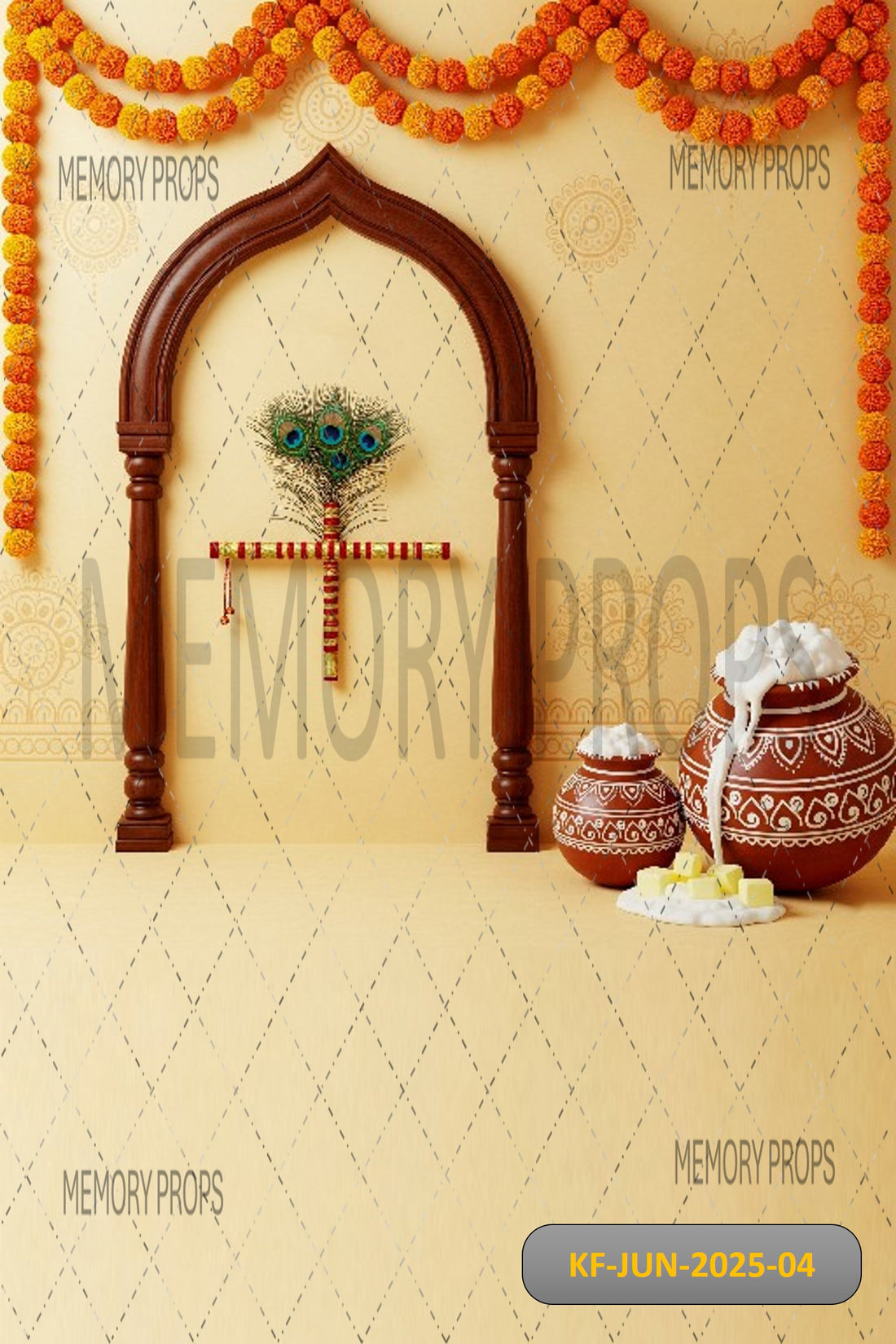 Inspired by the divine love of Vrindavan, this backdrop features beautifully crafted clay vessels, floral...