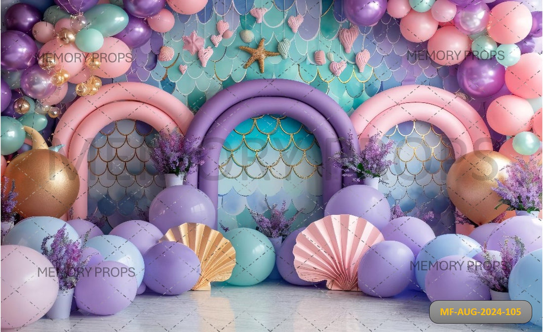 MERMAID BALLOON GARLAND ARCH - PRINTED BACKDROPS