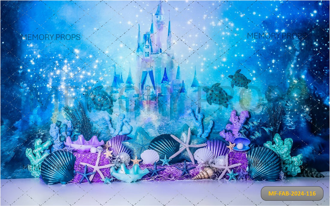mermaid theme backdrop with grey flooring creates a mystical and ocean-inspired atmosphere. The printed backdrop...
