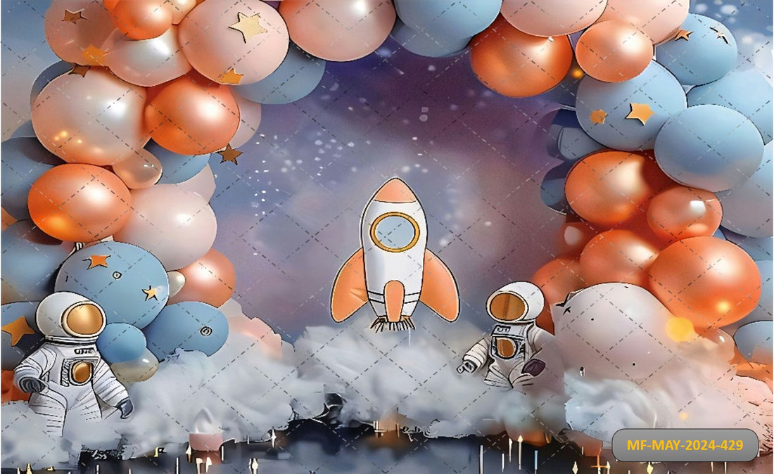 Blast off into fun with this dynamic backdrop featuring a colourful rocket soaring through the...