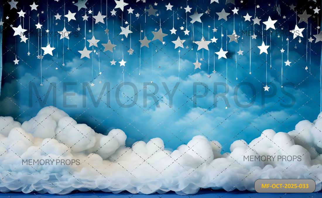 NIGHT SKY CLOUDS AND SILVER STARS - PRINTED BACKDROP