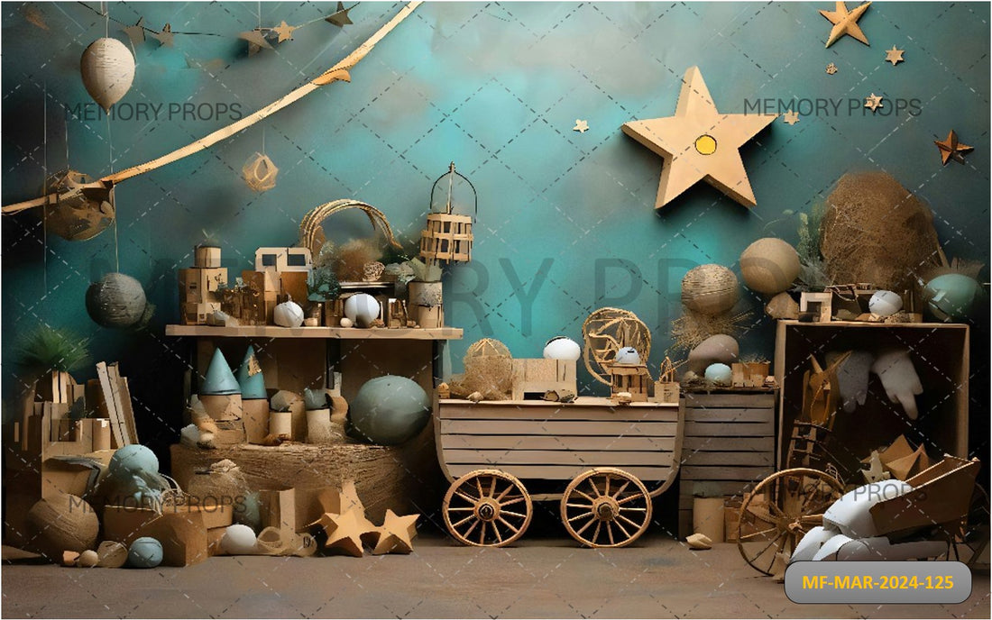 FRONT VIEW WALL OF A COZY TOY ROOM VINTAGE PRINTED BACKDROP