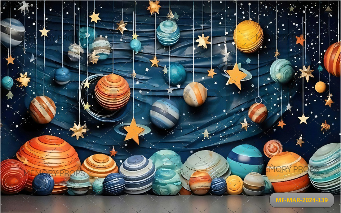 COSMOS MAGIC BALLOONS PLANETS WITH STARS SMASH PRINTED BACKDROP