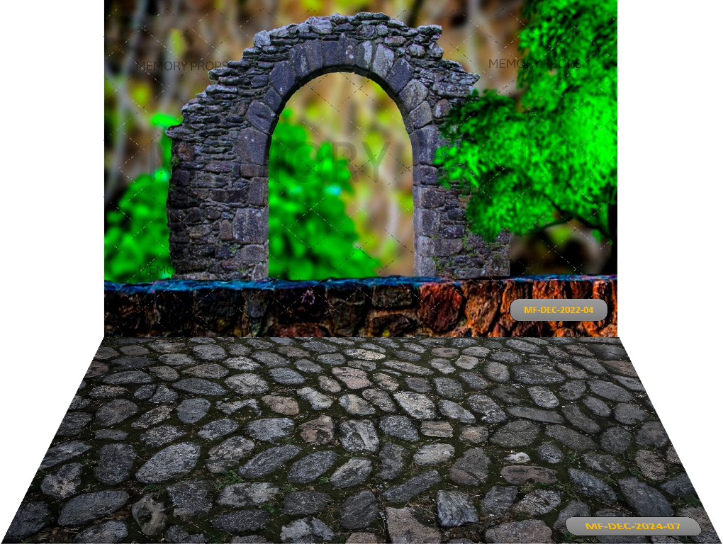 forest arch bokeh scene backdrop with a stone texture creates a dreamy and enchanting atmosphere....