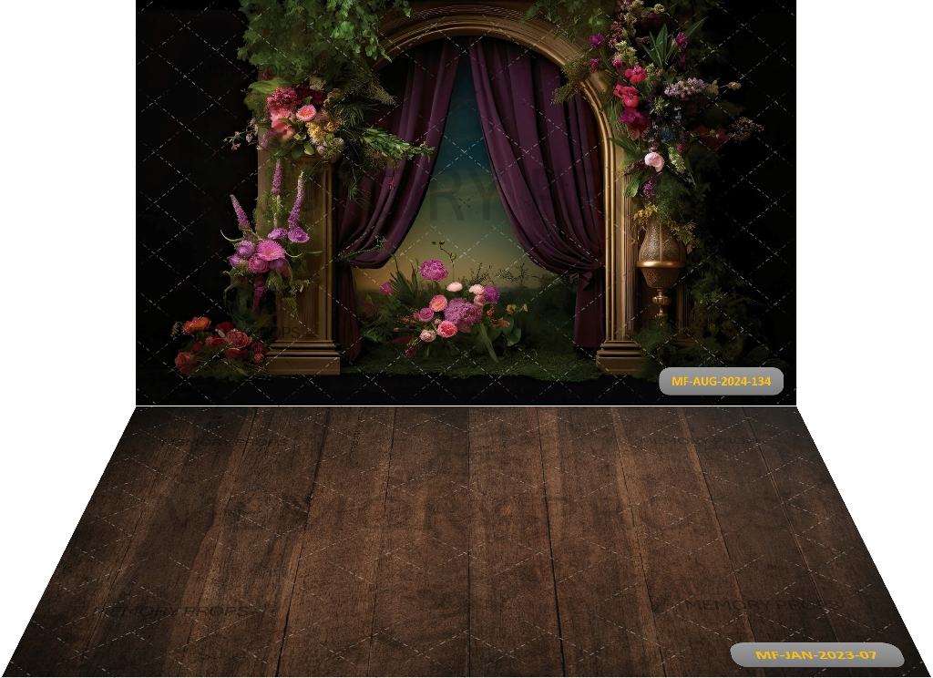PURPLE FLORAL WALL + WOODEN TEXTURE BACKDROPS