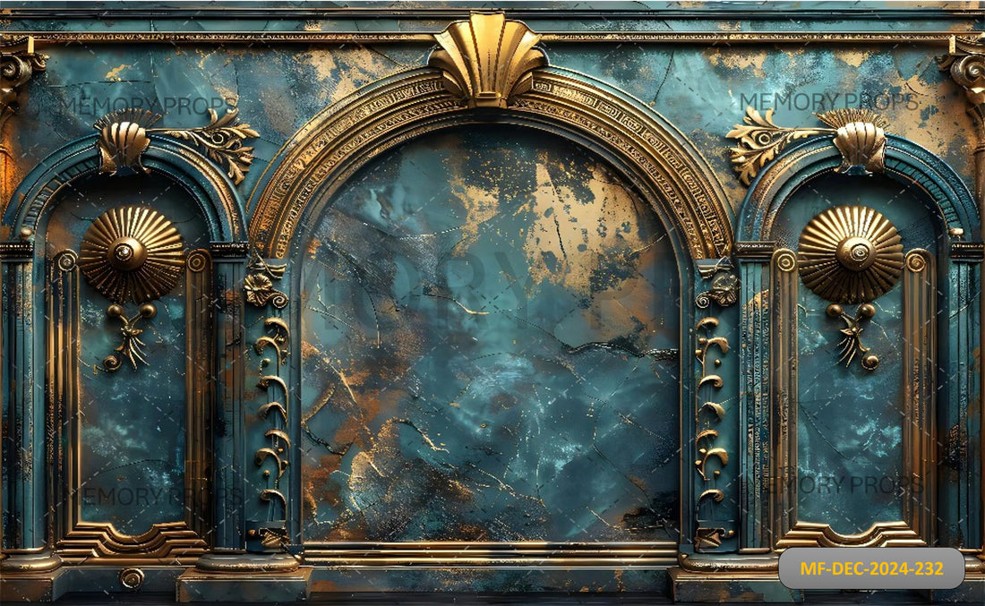 Add a touch of elegance with this stunning backdrop featuring a graceful gold arched window...