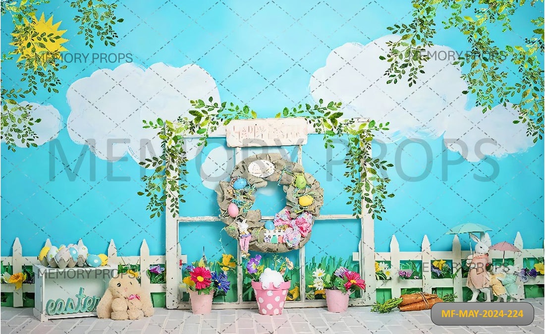 Celebrate spring with charm! This cheerful backdrop features pastel blooms, a cuddly bunny, colorful eggs,...