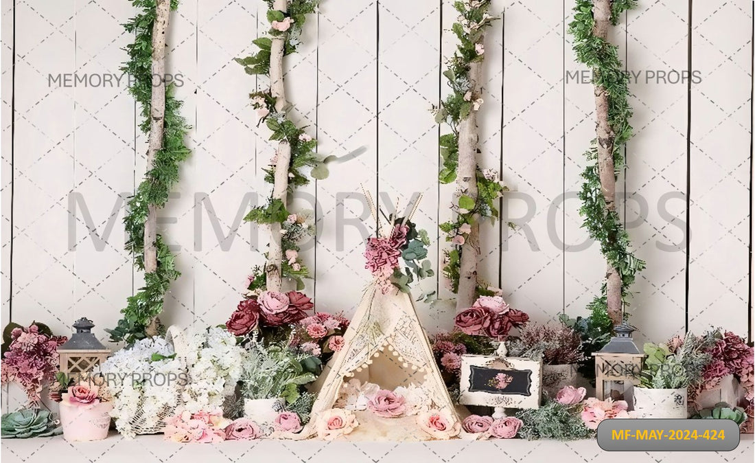 SPRING GARDEN FLORAL HOUSE - PRINTED BACKDROP